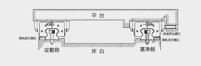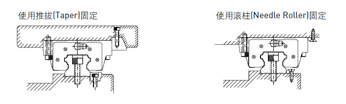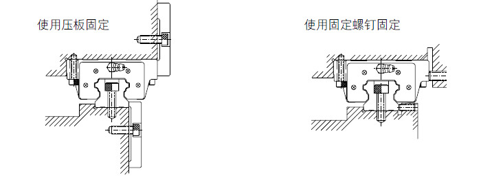 當(dāng)機(jī)床平臺(tái)受到振動(dòng)、沖擊力的作用時(shí),導(dǎo)軌及滑塊很可能偏離原來的固定位置而影響精度。為避免這種情況的發(fā)生,建議采用以下方式來固定導(dǎo)軌及滑塊,以確保機(jī)床平臺(tái)的運(yùn)行精度。