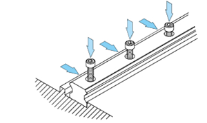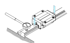 2、將上銀導(dǎo)軌平穩(wěn)的放在機(jī)臺(tái)上,并讓導(dǎo)軌側(cè)旁基準(zhǔn)面靠上機(jī)臺(tái)的裝配面。