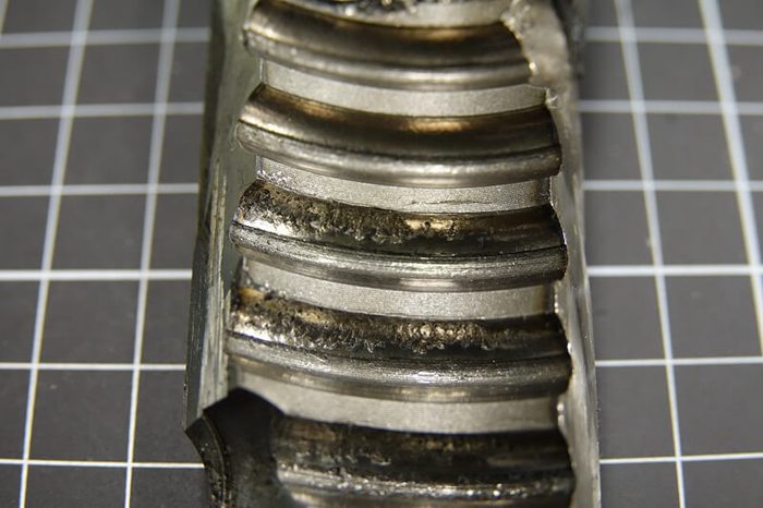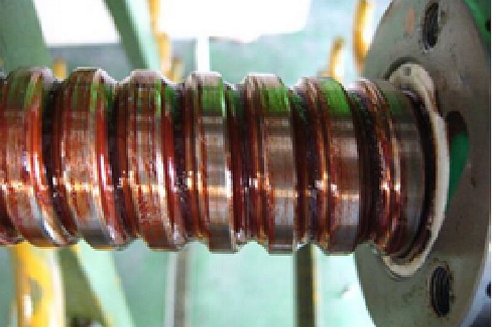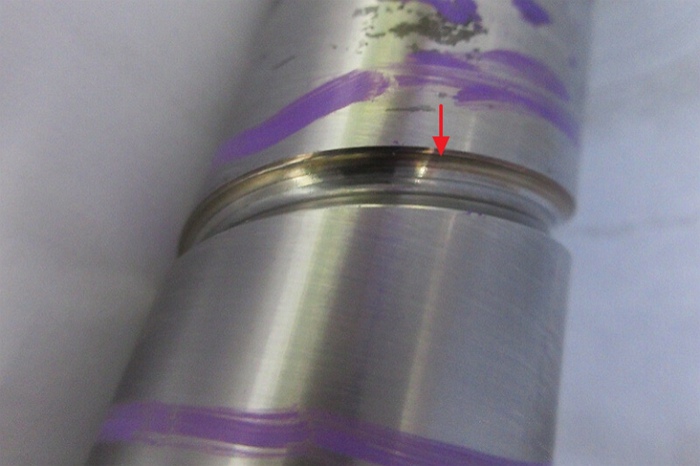 當絲杠承受負荷時,一定會產生磨擦力。在潤滑不足的狀況下,摩擦產生的熱量無法有效地排除,潤滑劑無法發揮正常功能,導致絲杠螺紋面過熱呈現黃褐色。