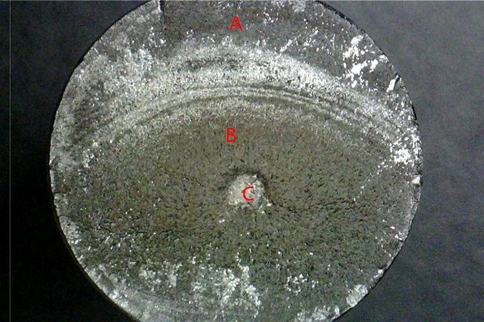 運轉時絲杠肩部反覆受到彎曲的力量,使得初始裂紋自A→B→C最終斷裂。