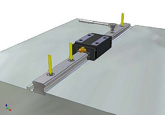 步驟.2:將主軌輕輕安置在床臺上,使用側(cè)向固定螺絲或其他固定治具使線軌與側(cè)向安裝面輕輕貼合。