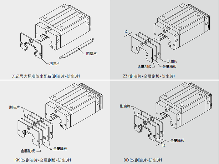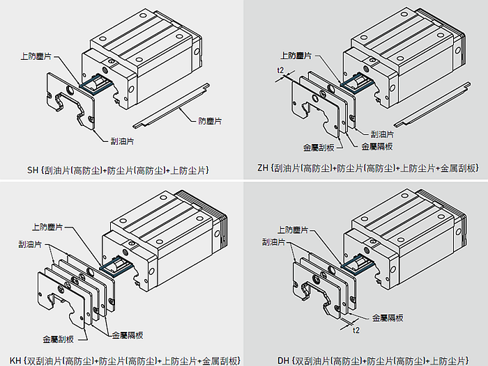 市面上比較常用的HIWIN導軌防塵配備如下圖所示: